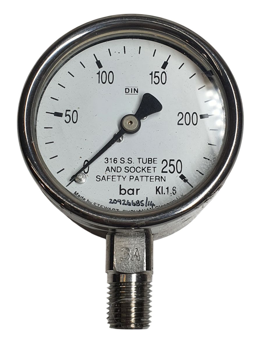 Stewart Buchanan Pressure Gauge 0-250 bar 1/4 NPT Male 63mm
